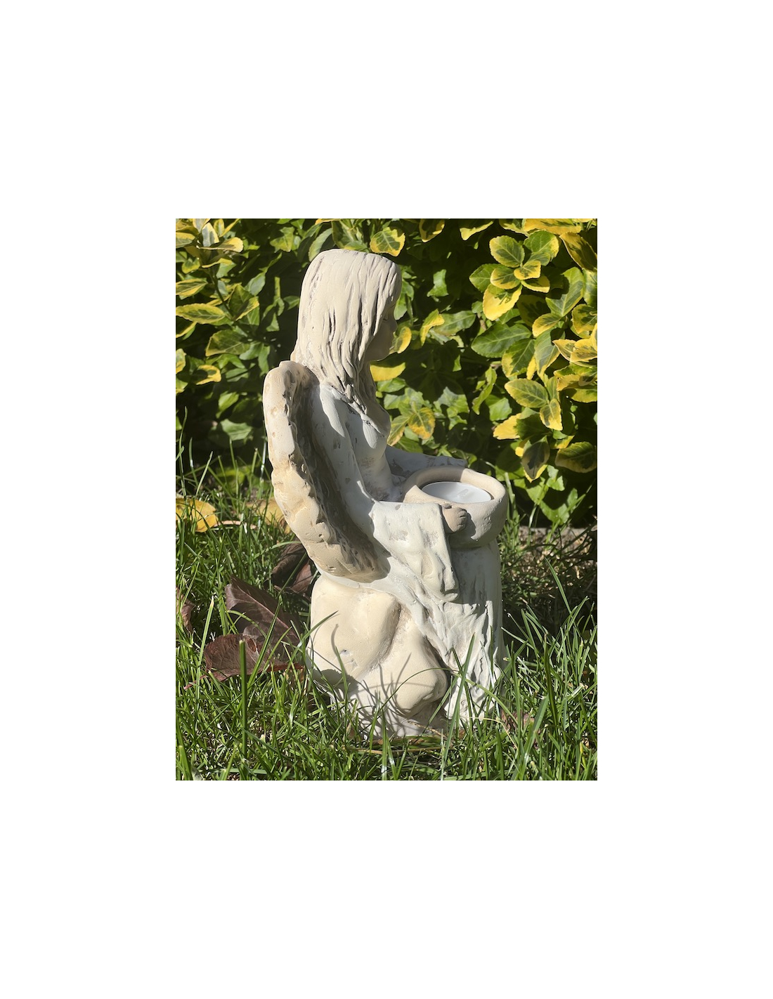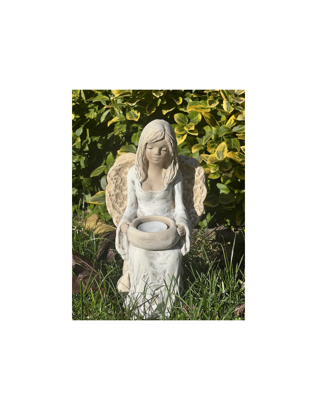 Sedící anděl na kameni - svícen na čajovou svíčku.