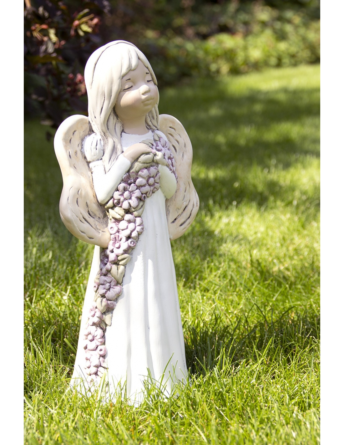 Keramický andělíček s květinami.Vhodně do interiéru.Velikost: výška 255 mm, šířka 106 mm, síla 86 mm.