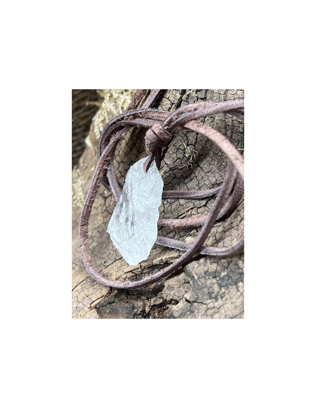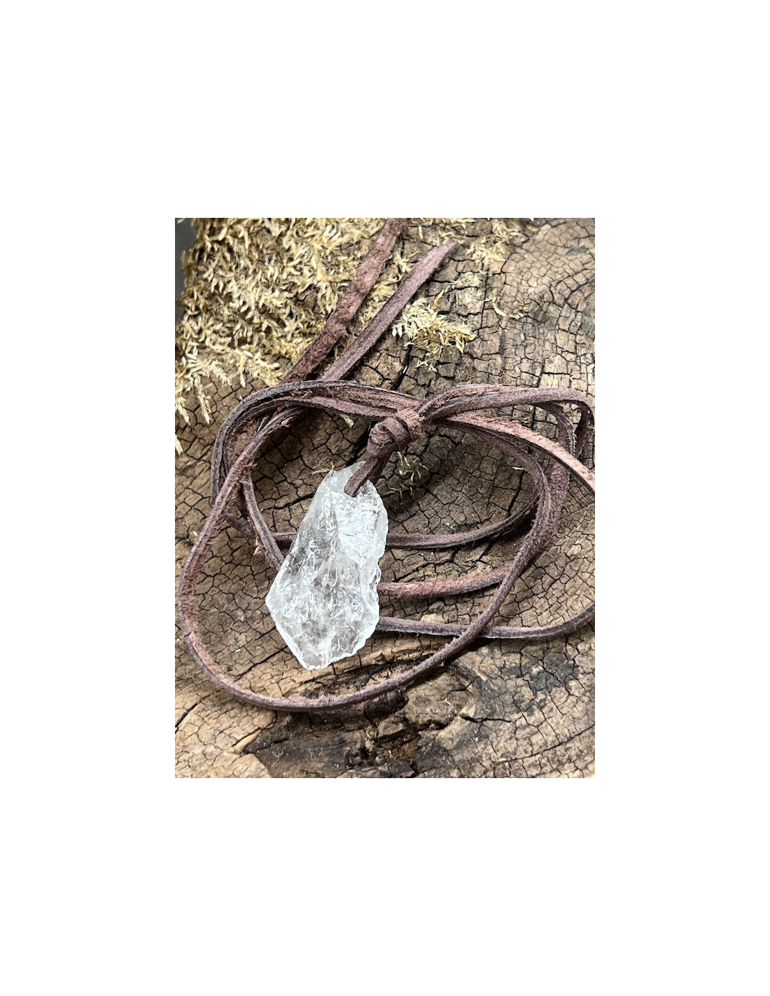 Kompletováno: přírodní surový křišťálový kousek provrtaný na kůži, hnědá kůže 80 cm.