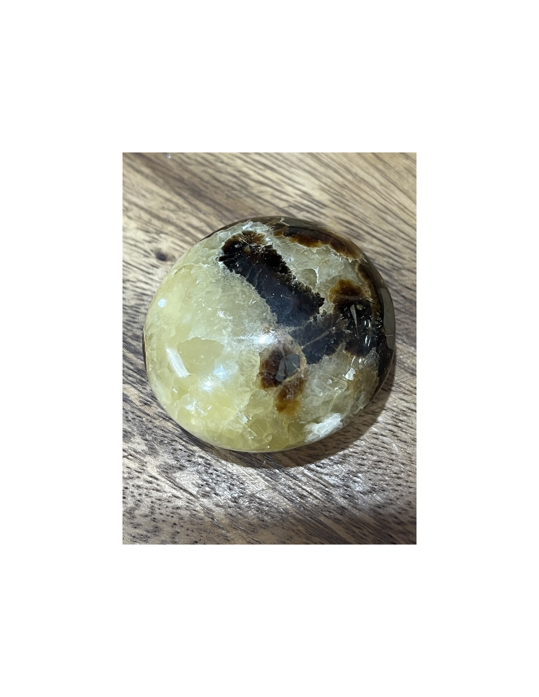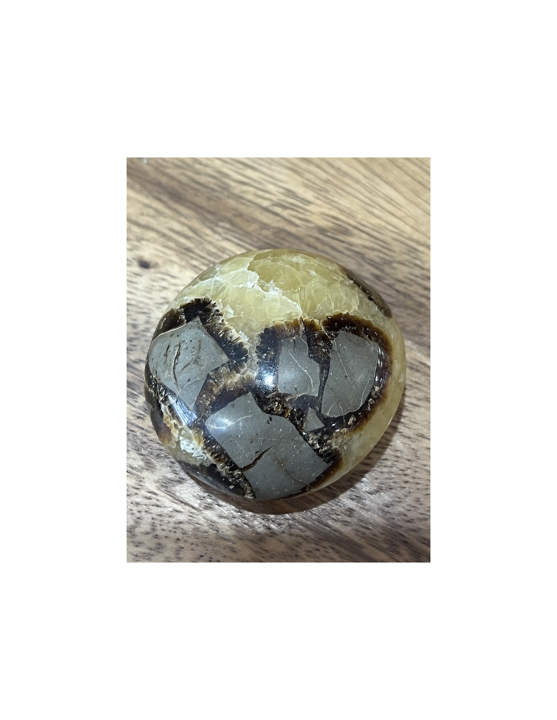 Septárie (známá též jako Dračí kámen) vznikaly zhruba před 50 - 70 mil. let při tektonické činnosti na mořském dně. Někdy se septáriím říká také dračí vejce, a skutečně, tyto zvláštně barevné, dřevo připomínající kameny, s bizardně tvarovanými světlými prasklinami na tmavém pozadí v sobě nesou něco z této archaické, pradávné síly, která stála na samém začátku všeho, z tajemné dračí energie. Septárie je tvořena drobnými krystalky Kalcitu, Aragonitu a Chalcedonu. Kombinuje v sobě vlastnosti všech minerálů, z kterých je tvořena a díky tomu je kamenem s mimořádně silným účinkem. Poskytuje silnou energetickou ochranu jak na fyzické, tak duševní i éterické úrovni. Vysílá okolo sebe uklidňující energii. Je vynikajícím spojencem při studiu. Svému majiteli pomáhá s motivací a následně převést nové myšlenky a nápady do praxe. Příznivě rozvíjí kariéru, zejména spojenou s vystupováním na veřejnosti. Stimuluje základní - kořenovou čakru. Přináší povznášející pocit radosti a vnitřního rozvoje. V neposlední řadě je to také kámen ochranný, stejně jako draci jsou vnímáni ve většině starých civilizací jako stvořitelé a strážci, i tento kámen nás dokáže chránit před nepříznivými vlivy, temnými energiemi a vším špatným, co k nám v životě přichází.