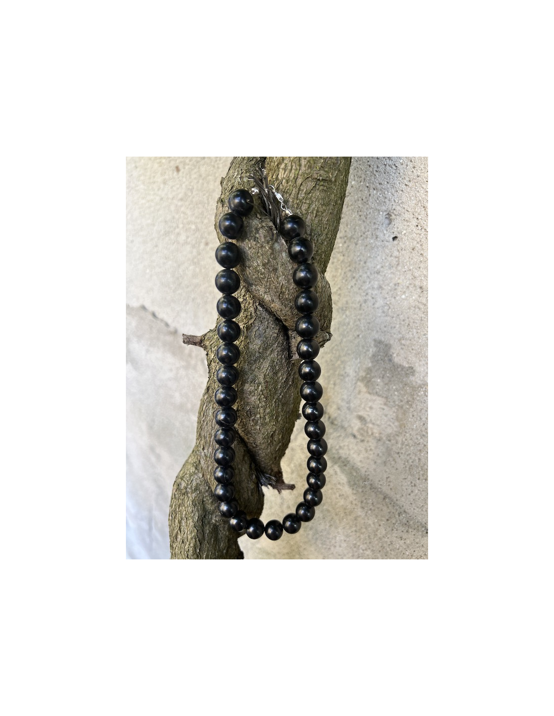 Kompletováno: stříbrné zapínání Ag 925 / 1000, struna, šungit korálek 12 mm.
