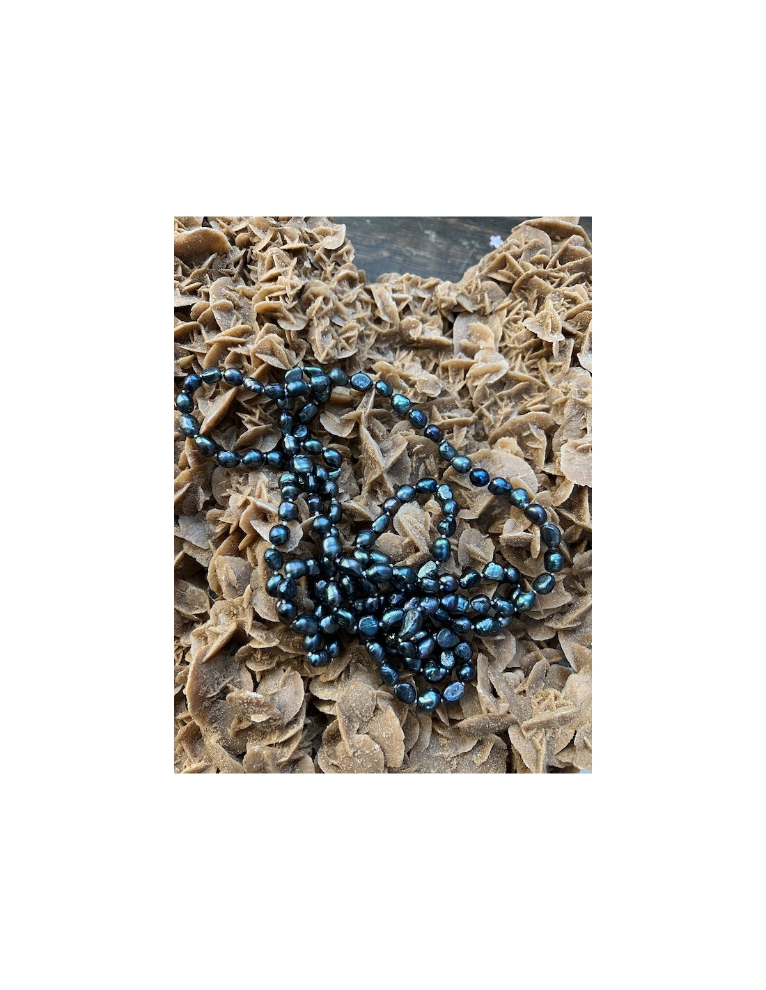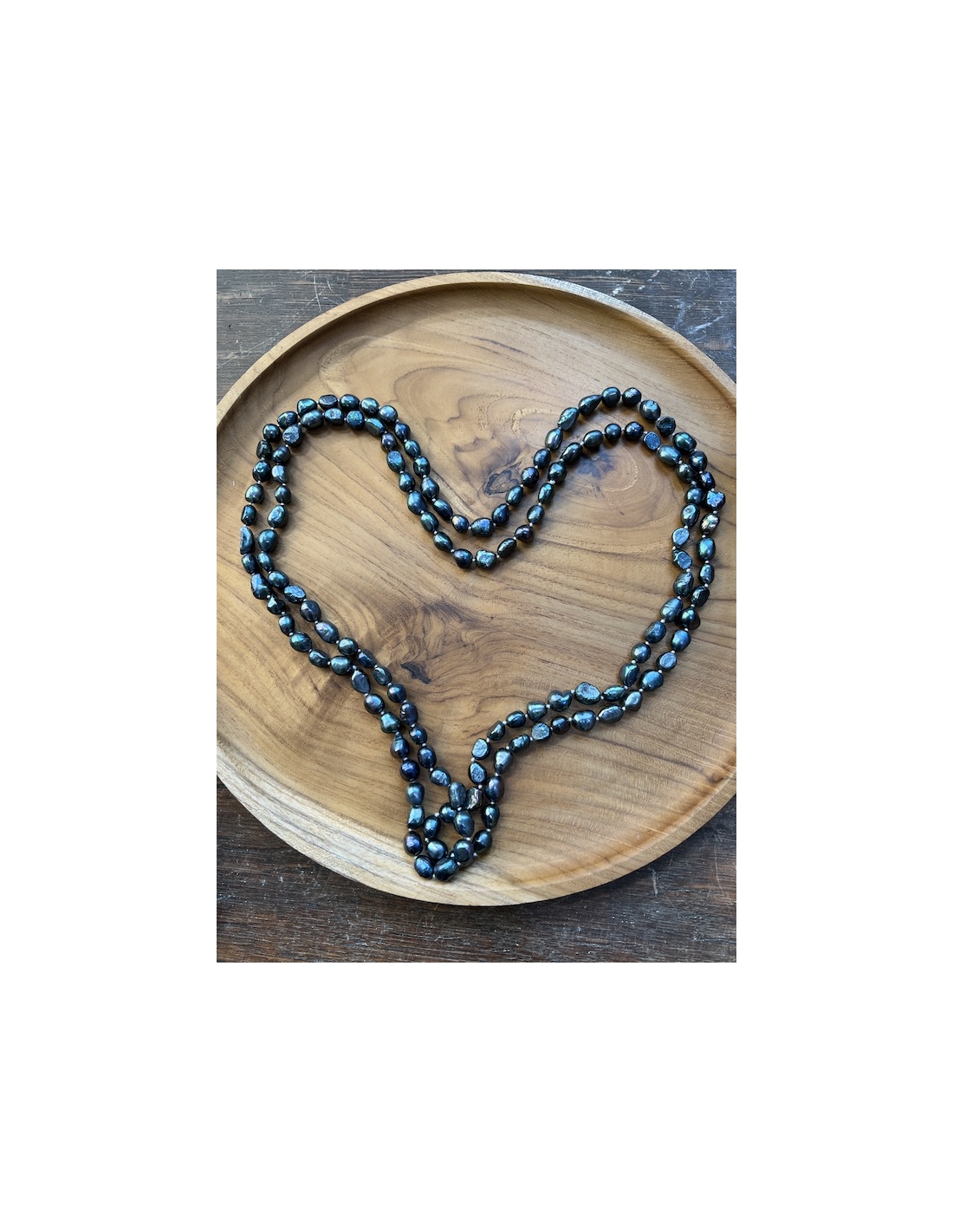 Náhrdelník je vyrobený z nepravidelných sladkovodních perel. Perly jsou navlečeny na hedvábné šňůrce, mezi jednotlivými perlami jsou uzlíky, aby se perly neodíraly. Délka náhrdelníku je 47 cm.