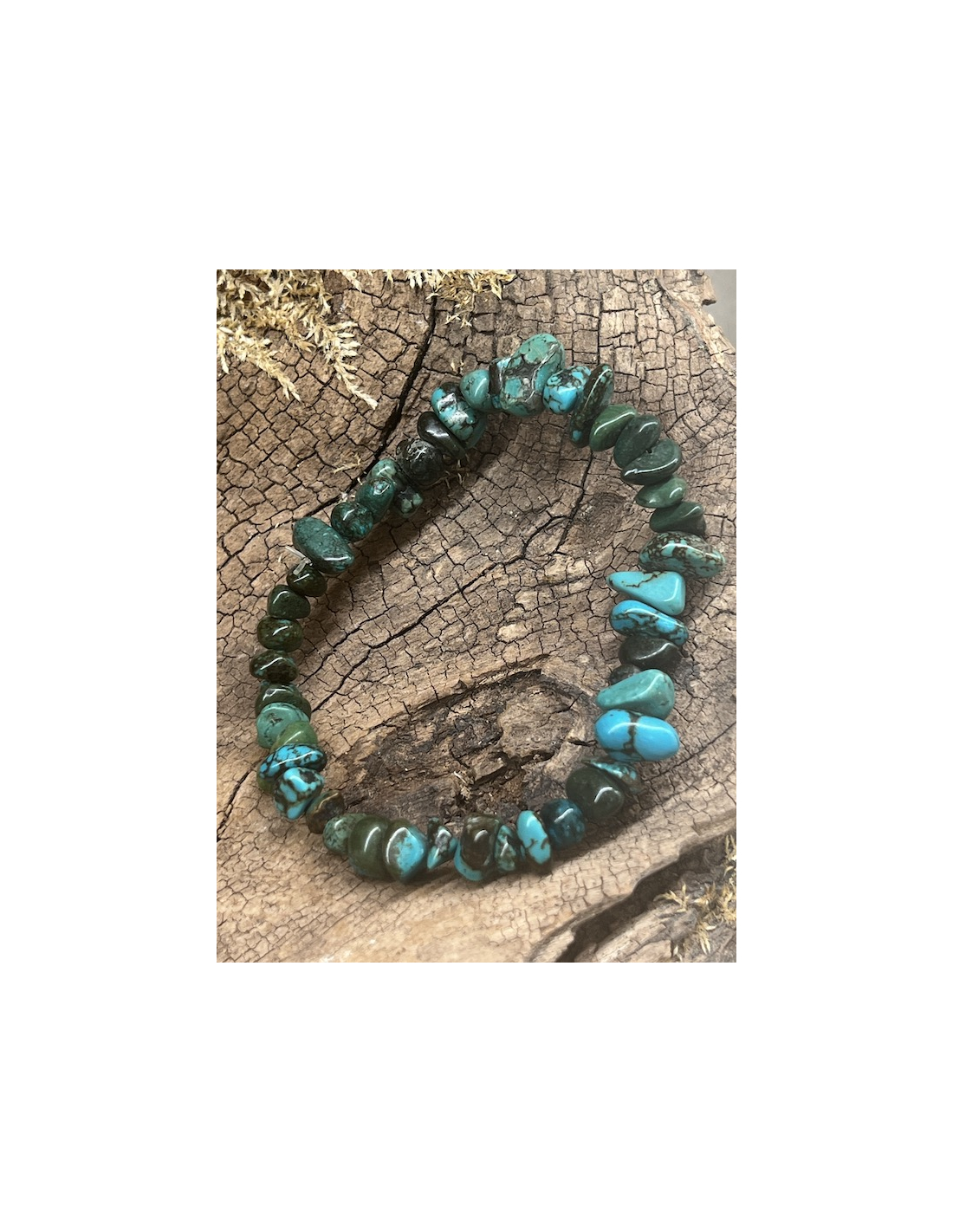Kompletováno: tromlované kousky Tyrkysu různé velikosti cca 8 - 12 mm, elastická gumička.