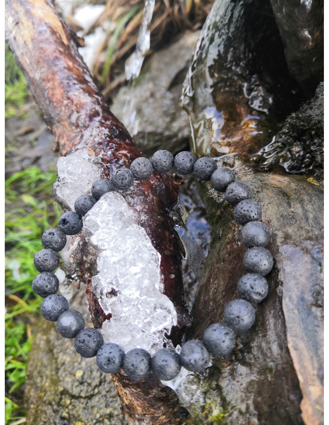 Náramek navlečen na elastické gumičce, velikost lávových korálků 8 mm.