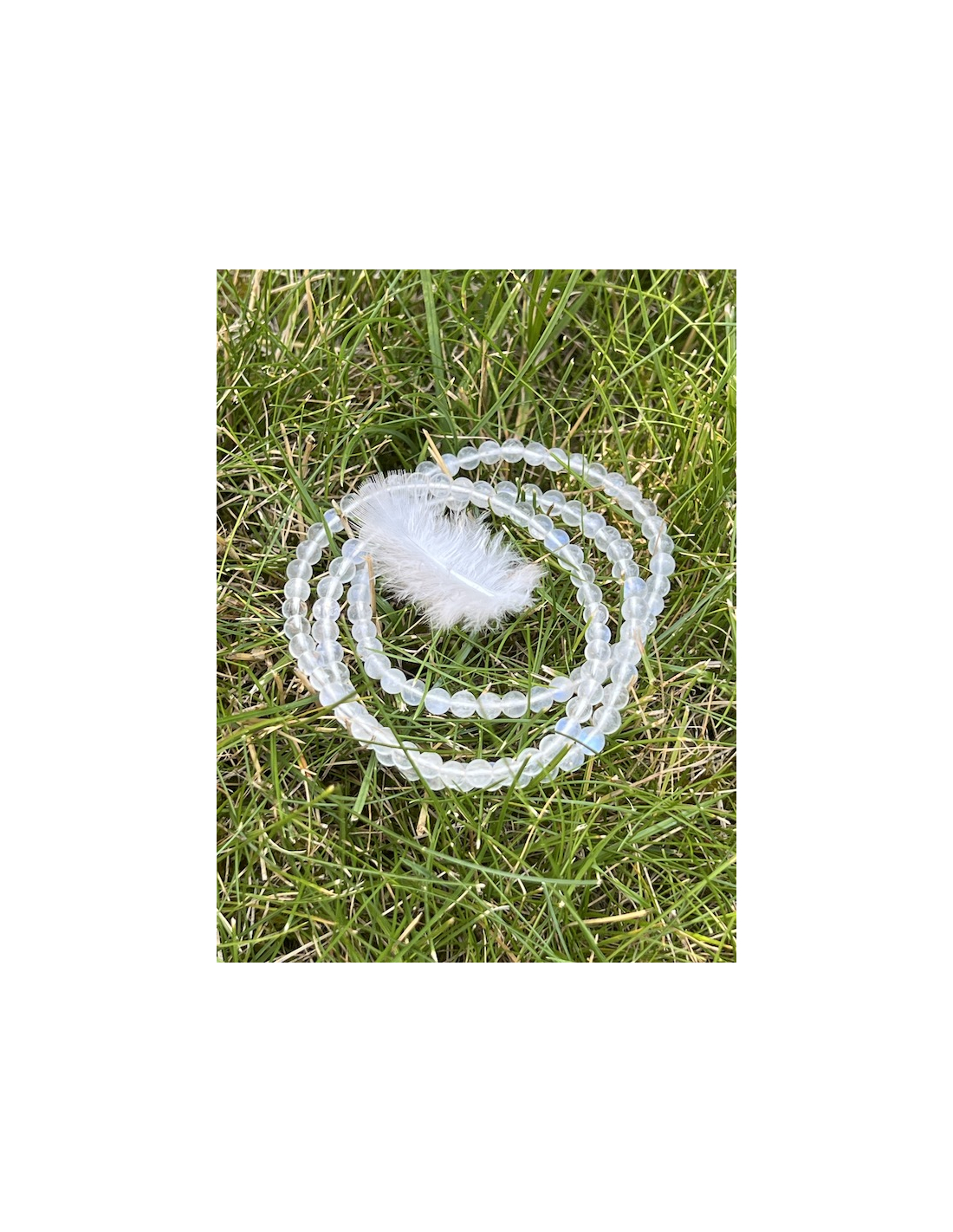 Kompletováno: Měsíční kámen kulička 4 mm, elastická gumička.
