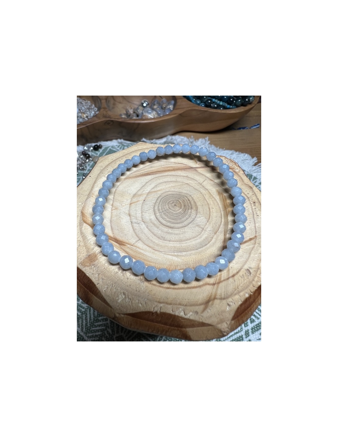 ANGELIT – symbolizuje mír a bohatství. Angelit je kámen komunikace neboli vzájemného procesu vysílání a přijímání. Utřiďte si s jeho pomocí myšlenky a urovnejte i další záležitosti ve svém životě. Zvyšuje vnímavost a telepatii. S angelitem v dlani můžete poprosit anděly, aby vám pomohli s vašimi citovými výkyvy. Když se vám chce plakat, nebo když pociťujete úzkost, je dobré se tohoto kamene dotknout, hledět na jeho pokojnou modř a přitom si zformulovat myšlenku, kterou požádáte anděly o pomoc. Angelit má příznivý vliv na hrdlo a oblast krku, včetně všech souvisejících onemocnění, jako jsou angína, bolest v krku, nebo namožený sval. Odblokuje meridiány a energetické dráhy. Angelit je vhodný pro duchovní poradce, intuitivní čtenáře, motivační řečníky a průvodce meditací.