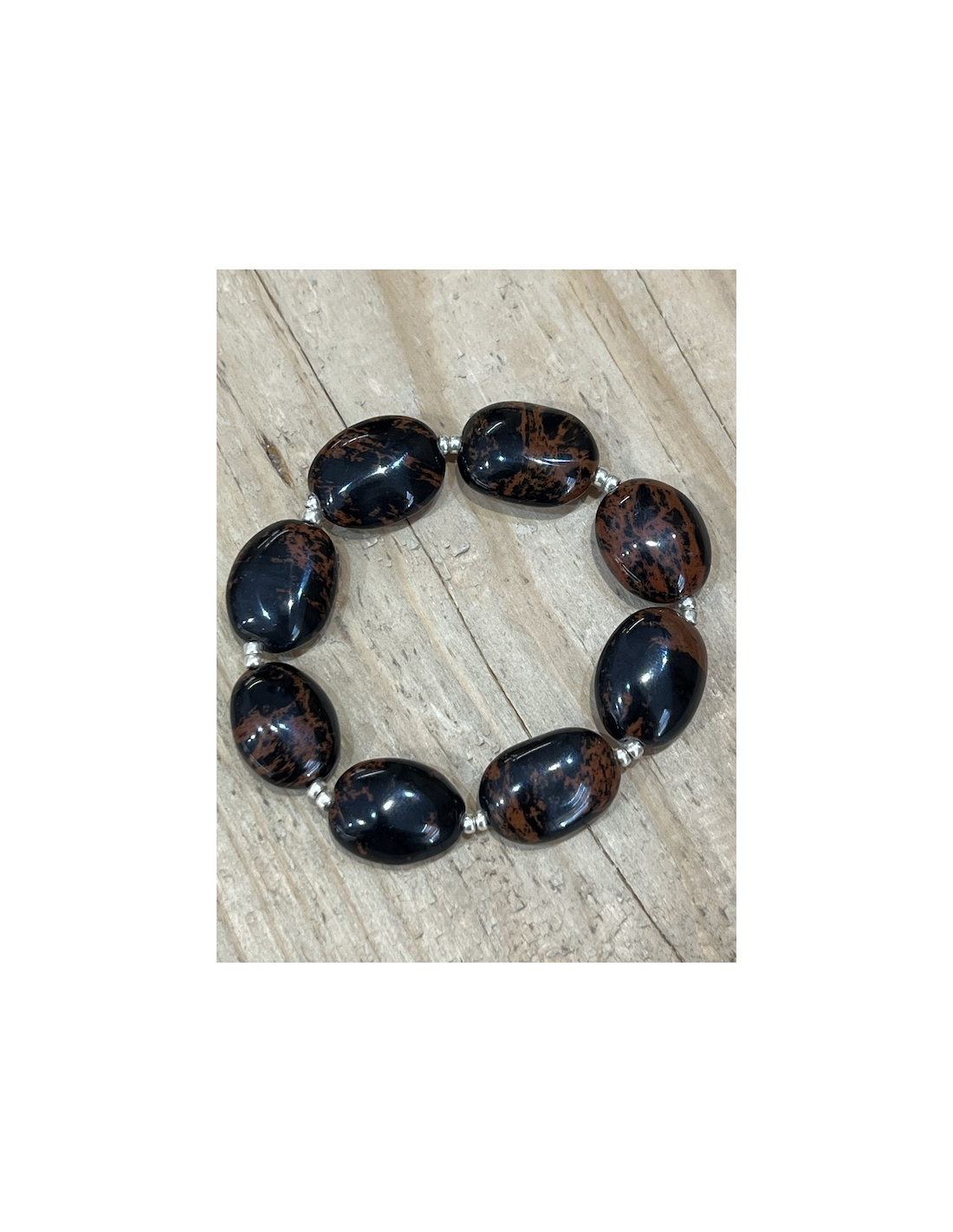 Kompletováno: mahagon obsidián ovál, elastická gumička, 4 mm zlatý korálek plast.