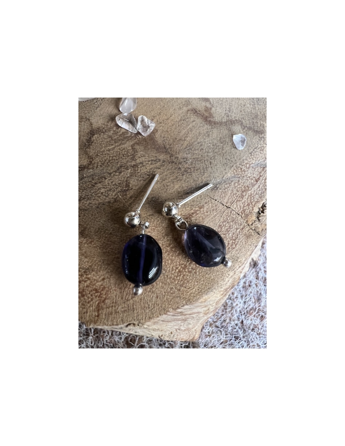 Iolit ( Cordierit ) - náušnice stříbro AG 925