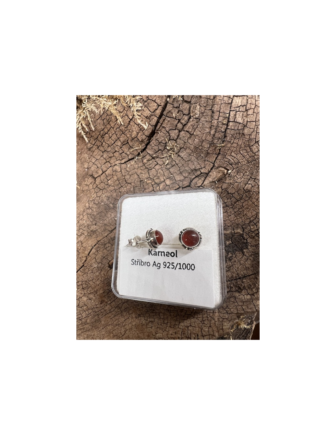 Kompletováno: Stříbro Ag 925/ 1000, karneol 4 mm.