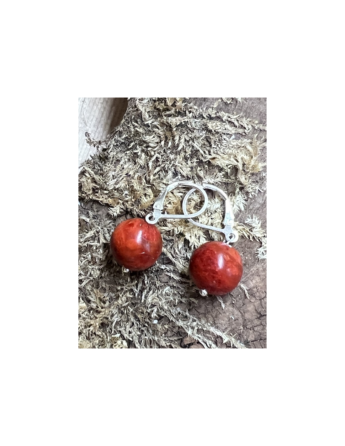 Kompletováno: kulička houbového korálu, Stříbro Ag 925 / 1000.
