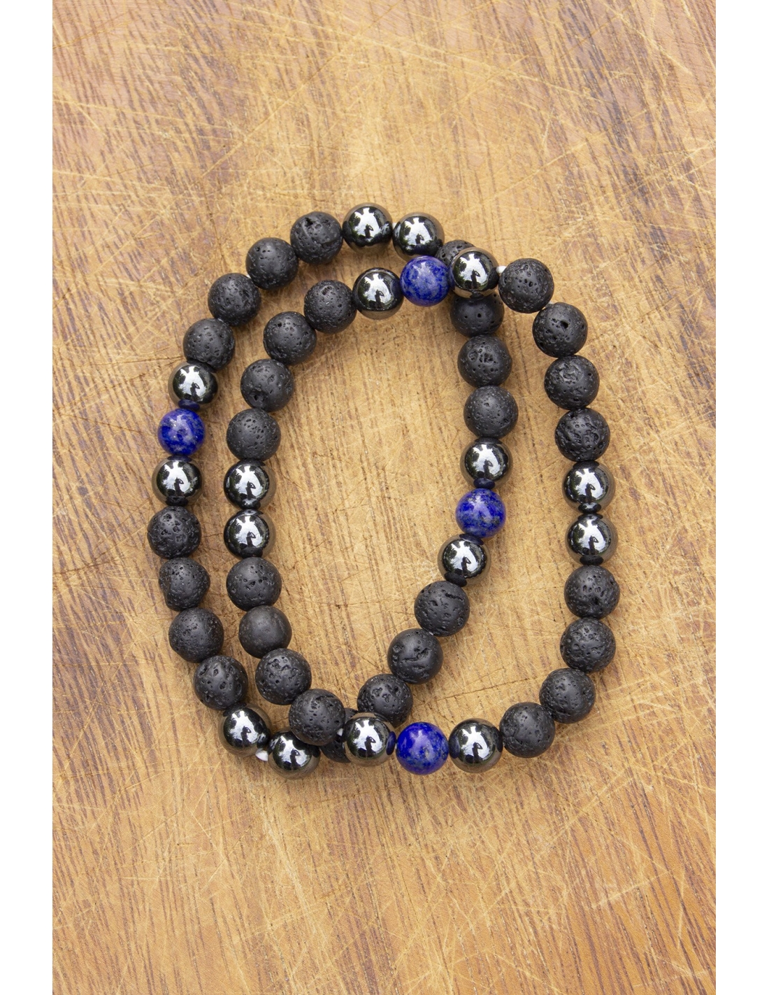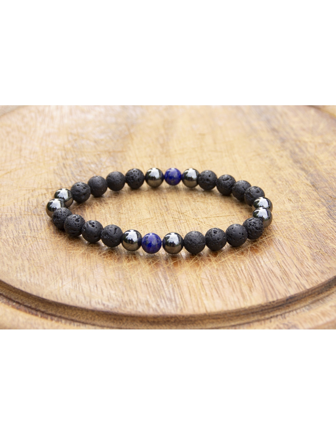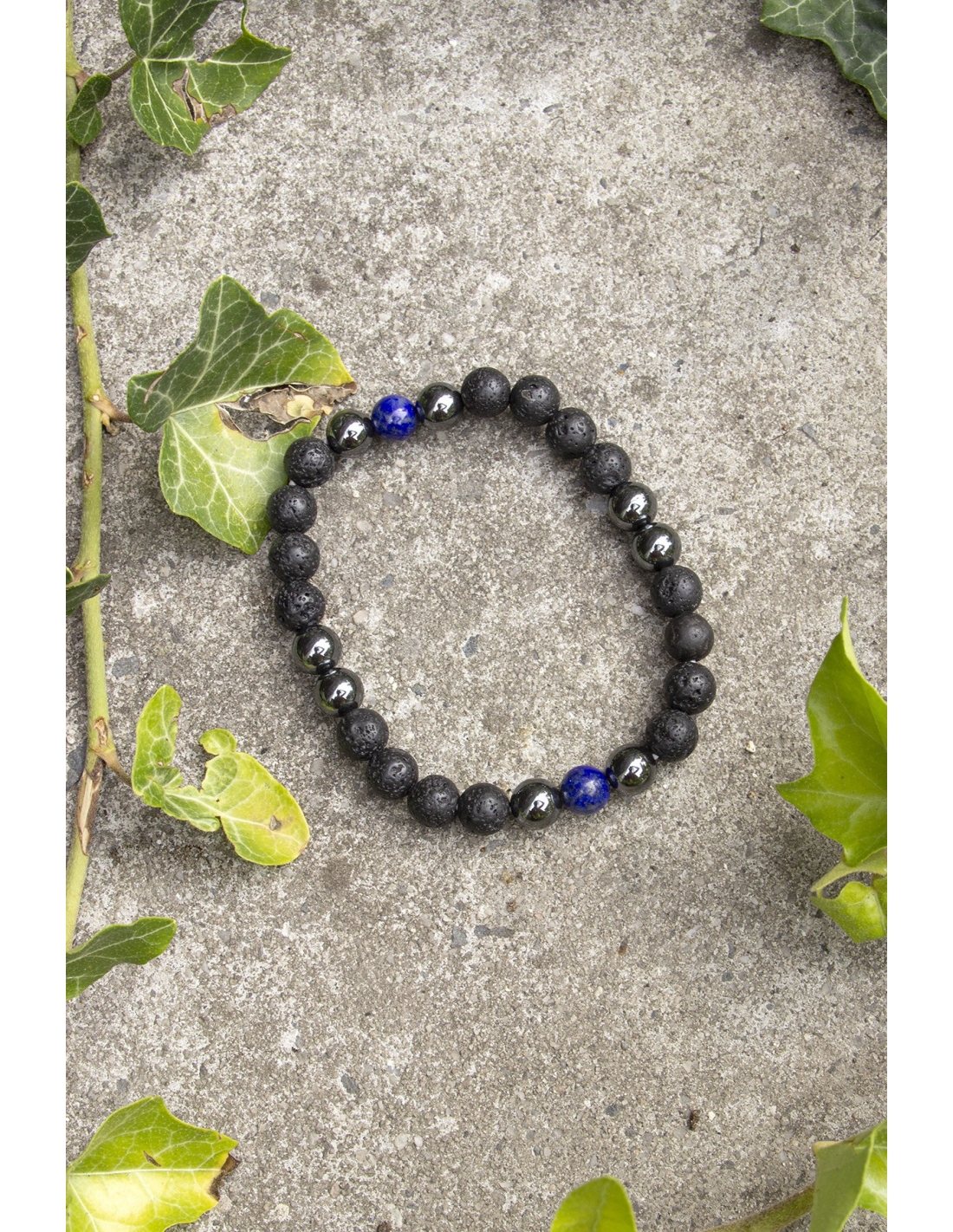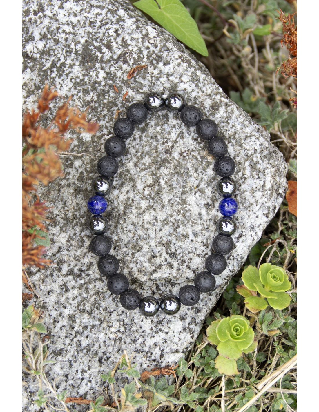 Pánský náramek z Lávového kamene, Lapisu Lazuli a Hematitu.