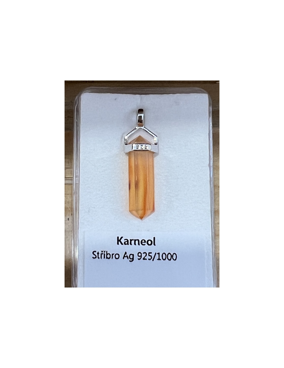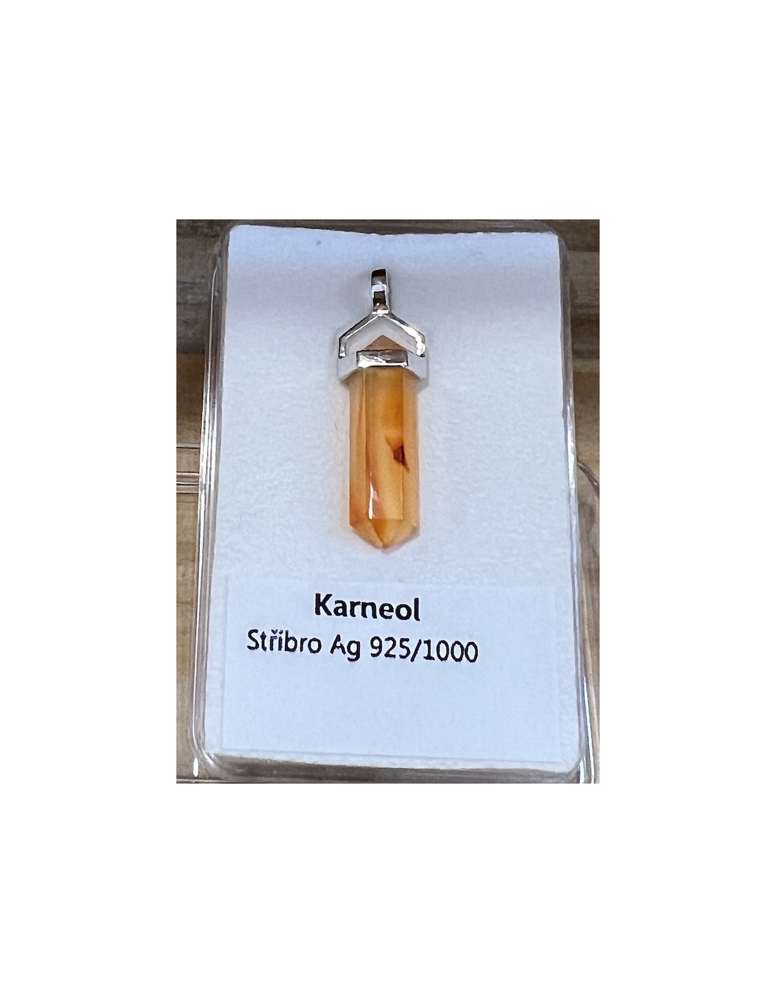 Karneol - přívěsek oboustranný hrot Ag 925