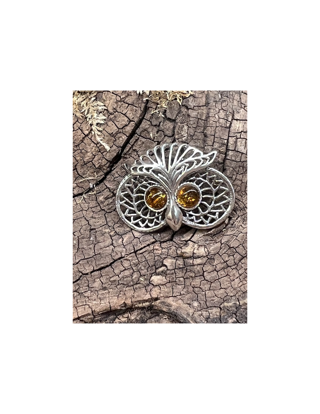 Jantar - přívěsek sova Stříbro Ag 925
