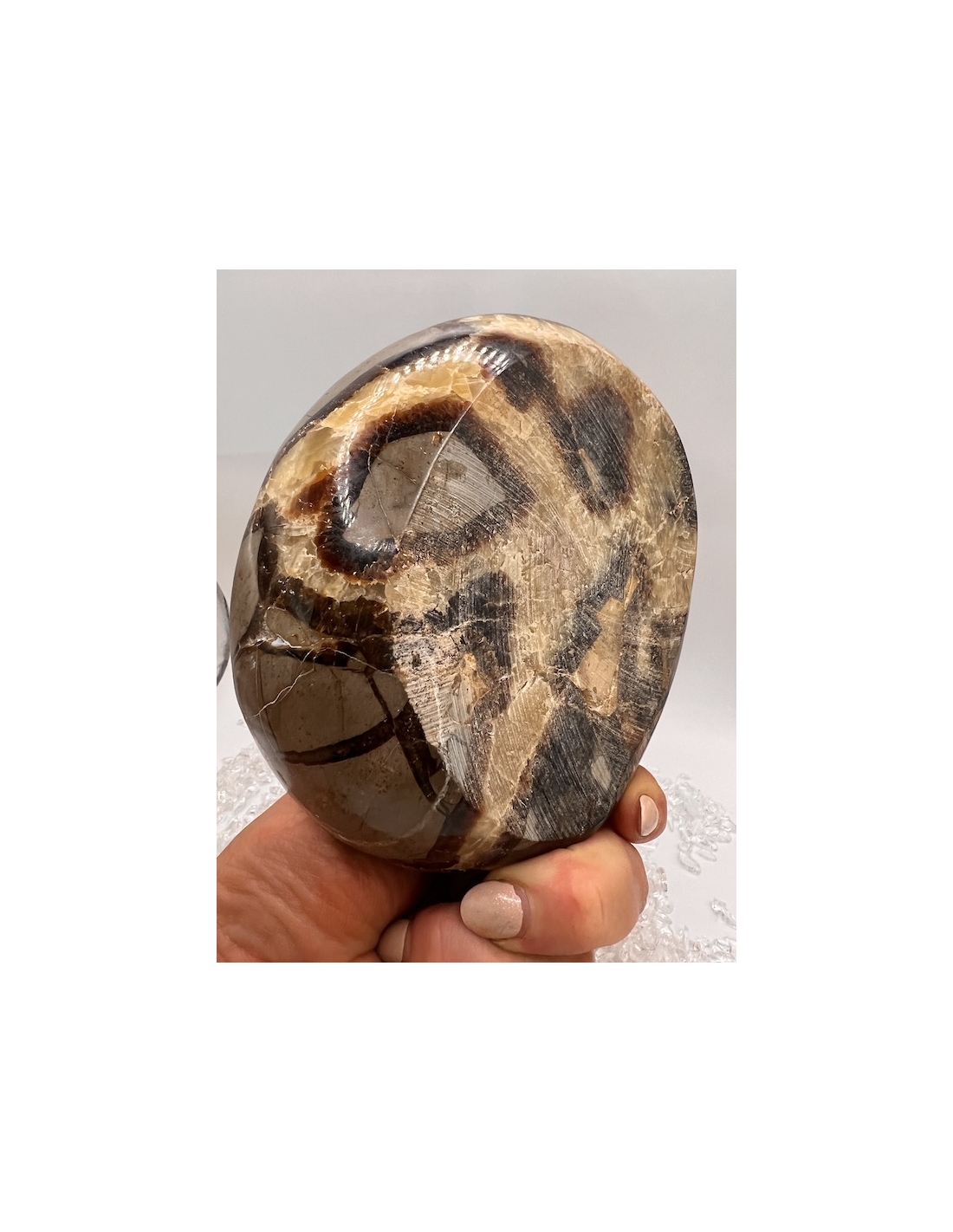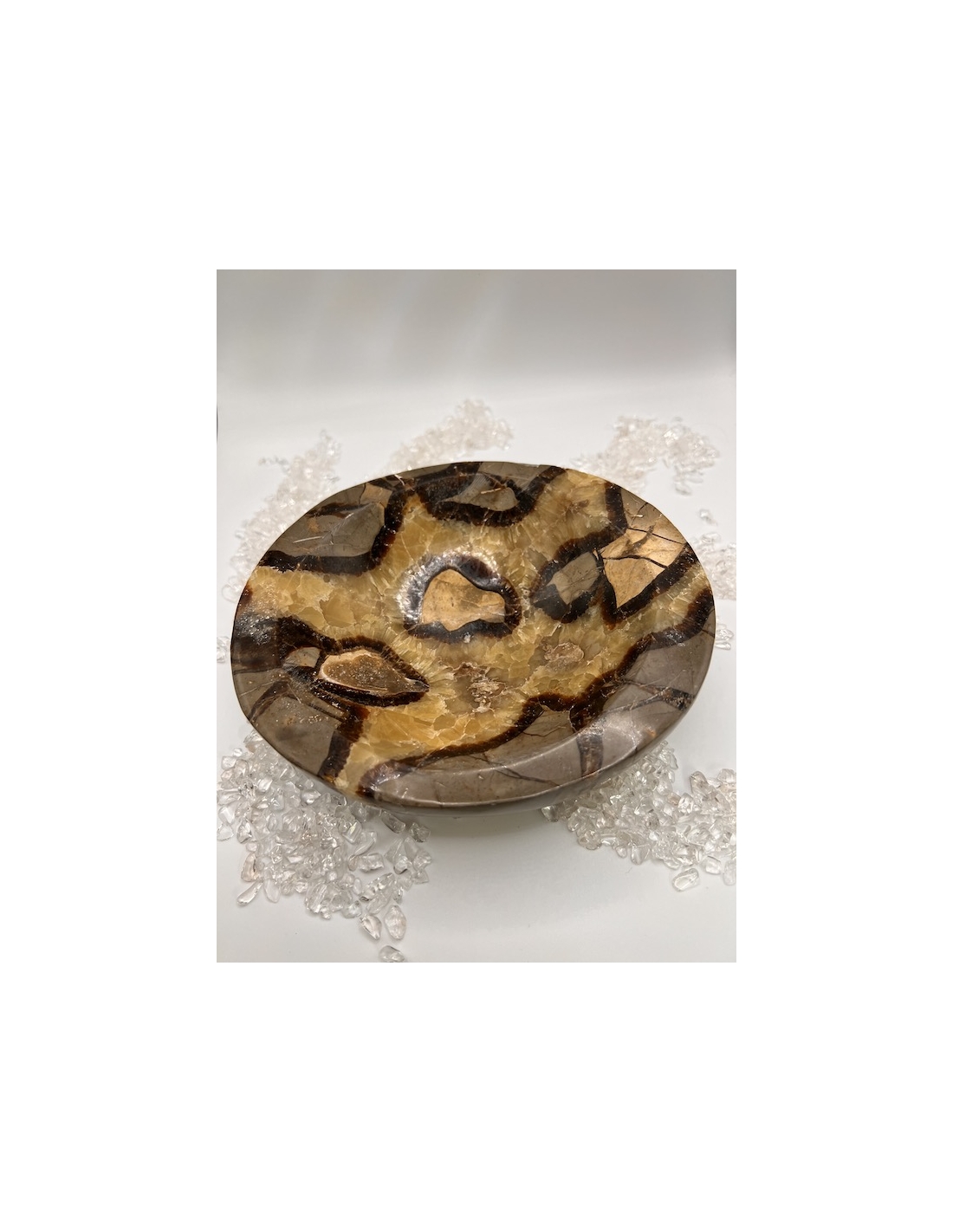 Septárie (známá též jako Dračí kámen) vznikaly zhruba před 50 - 70 mil. let při tektonické činnosti na mořském dně. Někdy se septáriím říká také dračí vejce, a skutečně, tyto zvláštně barevné, dřevo připomínající kameny, s bizardně tvarovanými světlými prasklinami na tmavém pozadí v sobě nesou něco z této archaické, pradávné síly, která stála na samém začátku všeho, z tajemné dračí energie. Septárie je tvořena drobnými krystalky Kalcitu, Aragonitu a Chalcedonu. Kombinuje v sobě vlastnosti všech minerálů, z kterých je tvořena a díky tomu je kamenem s mimořádně silným účinkem. Poskytuje silnou energetickou ochranu jak na fyzické, tak duševní i éterické úrovni. Vysílá okolo sebe uklidňující energii. Je vynikajícím spojencem při studiu. Svému majiteli pomáhá s motivací a následně převést nové myšlenky a nápady do praxe. Příznivě rozvíjí kariéru, zejména spojenou s vystupováním na veřejnosti. Stimuluje základní - kořenovou čakru. Přináší povznášející pocit radosti a vnitřního rozvoje. V neposlední řadě je to také kámen ochranný, stejně jako draci jsou vnímáni ve většině starých civilizací jako stvořitelé a strážci, i tento kámen nás dokáže chránit před nepříznivými vlivy, temnými energiemi a vším špatným, co k nám v životě přichází.