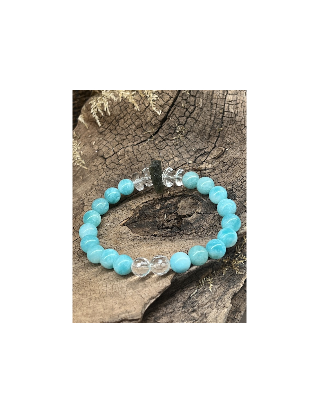 Vltavín s křišťálem a amazonitem - náramek