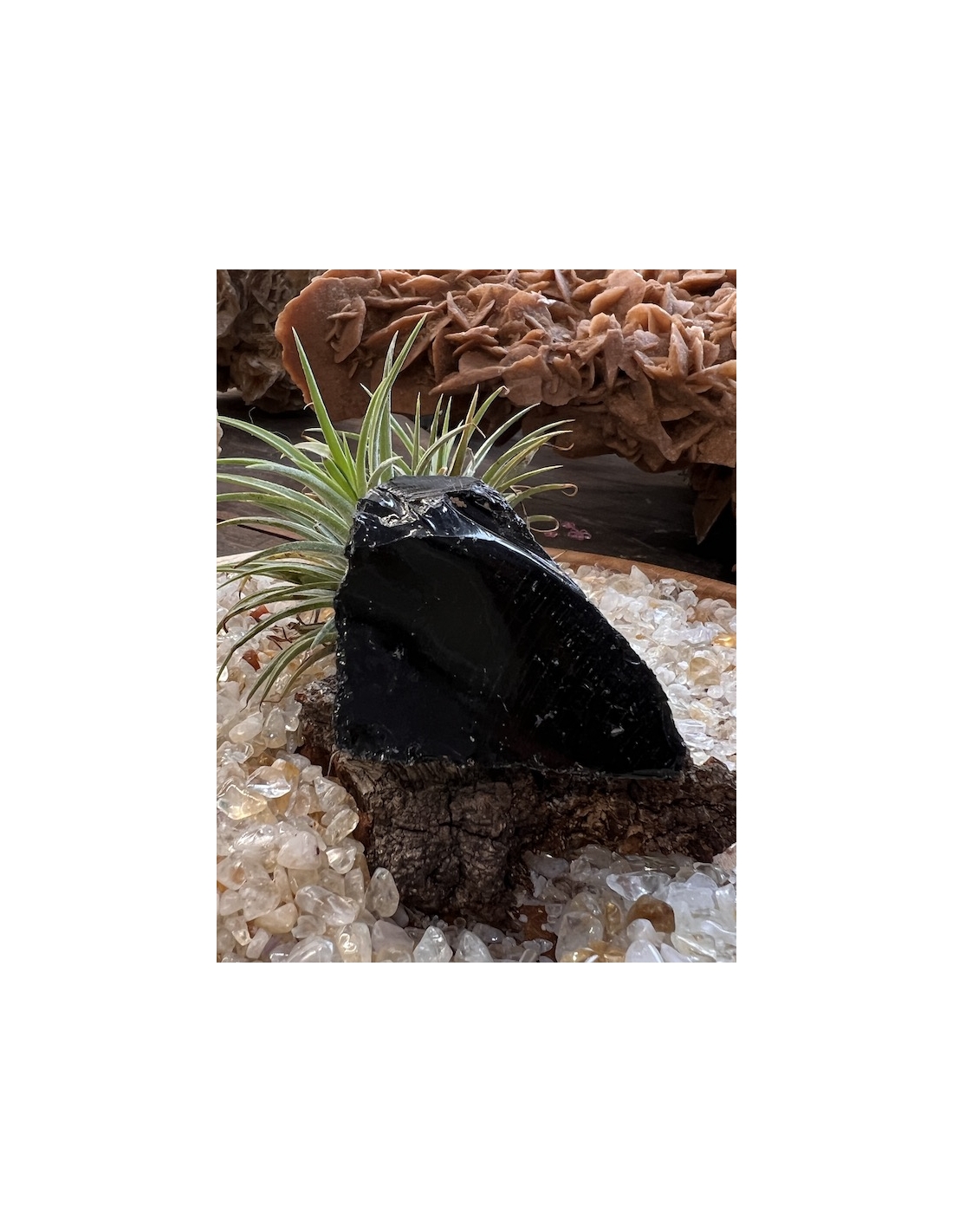 Obsidián je silně ochranný kámen vytvářející štít proti všemu negativnímu. Pohlcuje negativní energii z okolního prostředí a ve chvílích, kdy je to třeba, dokáže posilovat svého nositele. Přináší pomoc vysoce citlivým lidem. Dokáže zablokovat duševní útoky a odstraňuje negativní duchovní vlivy.